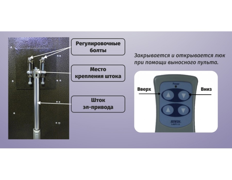 Цена указана за комплект малой мощности для установки на каркас в пределах значений 800*1500 мм. Для больших размеров закладываем Hiwin с синхронным приводом.P.S. В некоторых случаях дешевле демонтировать старую крышку из перекрытия и купить заводской подвальный люк с легким открыванием на амортизаторах из нашего каталога.