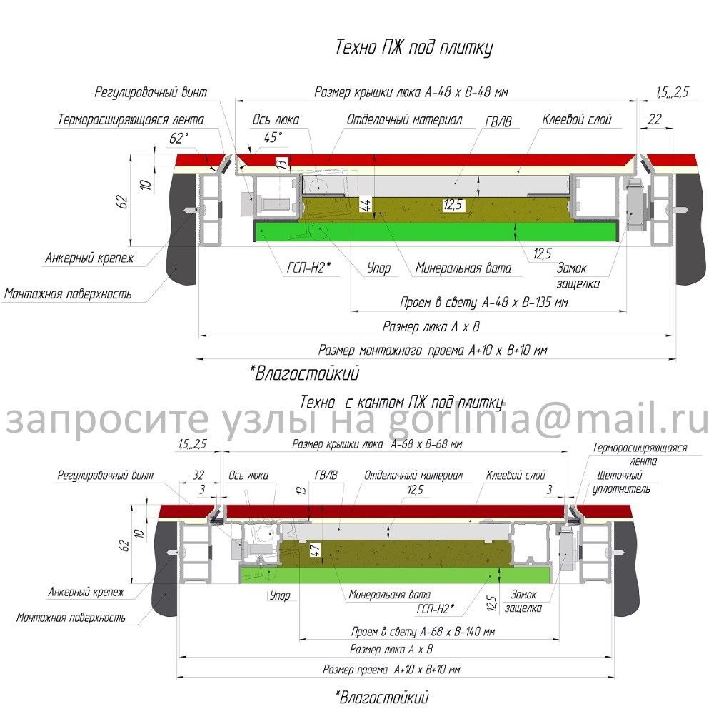 Теплоизолирующая способность достигается вторым слоем огнестойкого гипсоволокна ГСП-DF, минеральной плитой, а дымогазопроницаемость - дверной терморасширяющейся лентой в раме.